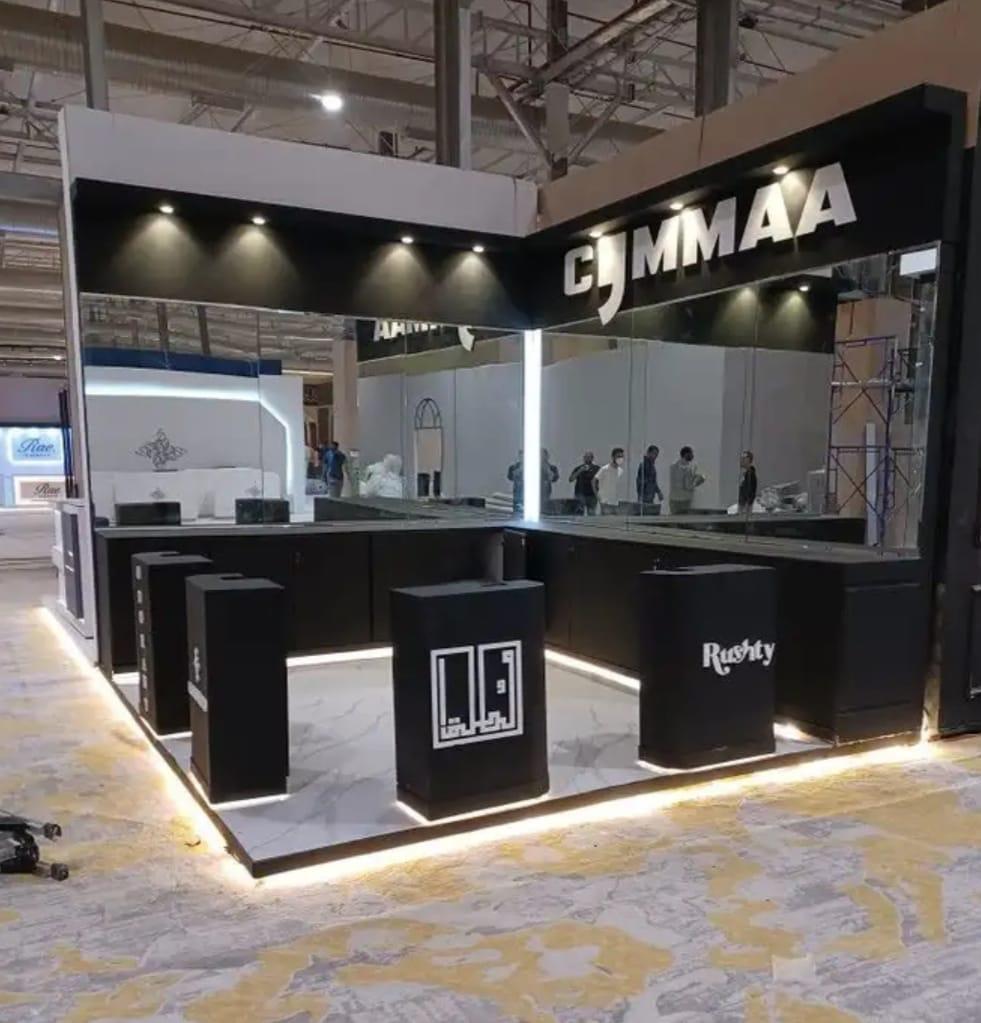 في براعة المستقبل نجهز لك كل شي من الألف إلى الياء: تصميم منصات عرض مميزة، ديكورات تبرز علامتك، شاشات حديثة، مع حلول الإضاءة والصوت اللي تعطي أجواء احترافية.